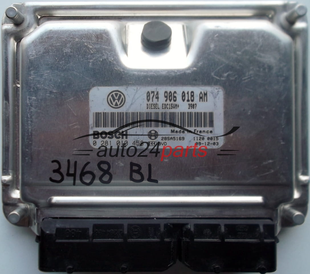 ΜΟΝΑΔΑ ΕΛΕΓΧΟΥ ΚΙΝΗΤΗΡΑ VW VOLKSWAGEN T4 2.5 TDI 074906018AM, 074 906 018 AM, BOSCH 0281010458, 0 281 010 458, DIESEL EDC15UM+ 3907 28SA5169