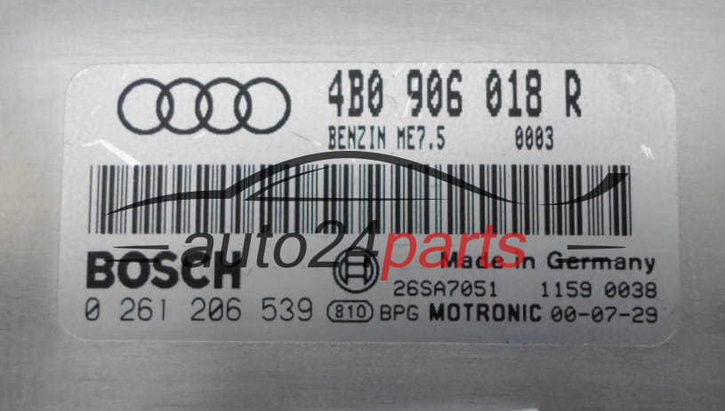 Μονάδα Ελέγχου Κινητήρα AUDI 1.8 T BOSCH 0 261 206 539, 0261206539, 4B0 906 018 R, 4B0906018R, ME7.5