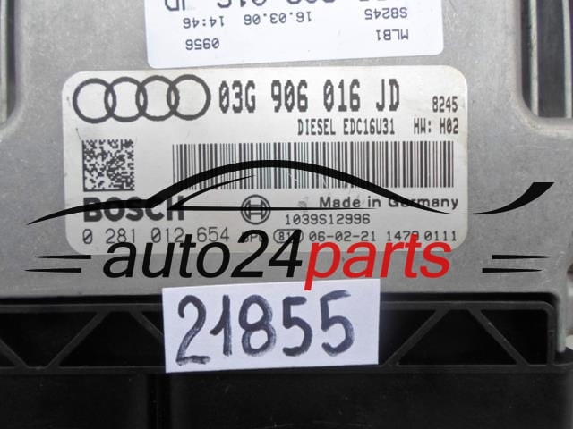 Μονάδα Ελέγχου Κινητήρα AUDI A4 2.0 TDI BRE 03G906016JD, 03G 906 016 JD, BOSCH 0 281 012 654, 0281012654, DIESEL EDC16U31