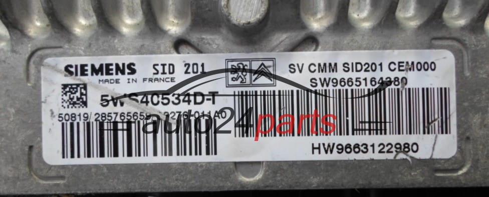 Μονάδα Ελέγχου Κινητήρα CITROEN C5 2.7 HDI SIEMENS 5WS40534D-T, 5WS40534DT, SW 9665164380, HW 9663122980, SID201