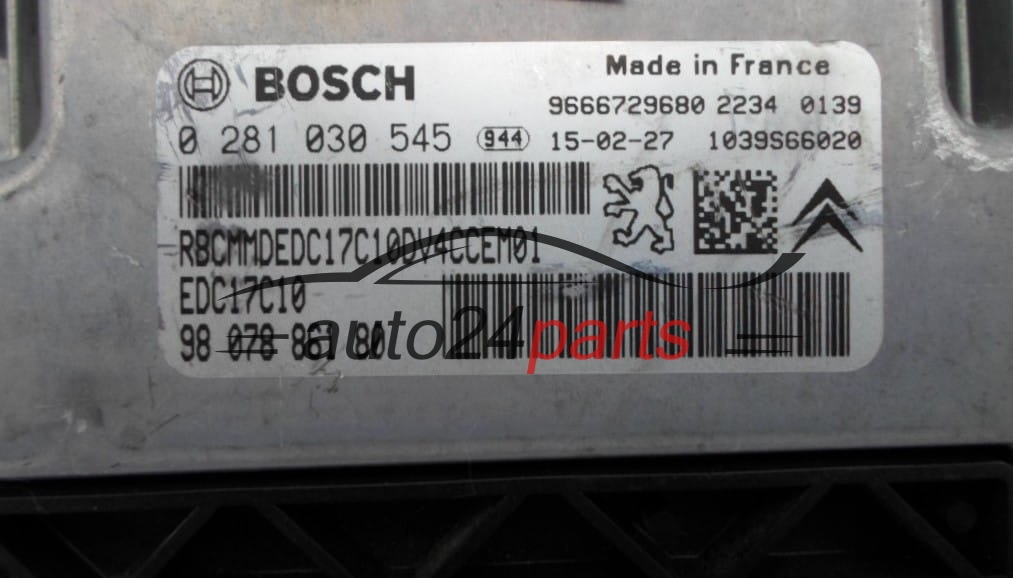 Μονάδα Ελέγχου Κινητήρα CITROEN PEUGEOT 1.4 HDI BOSCH 0 281 030 545, 0281030545, 98 078 861 80, 9807886180, EDC17C10