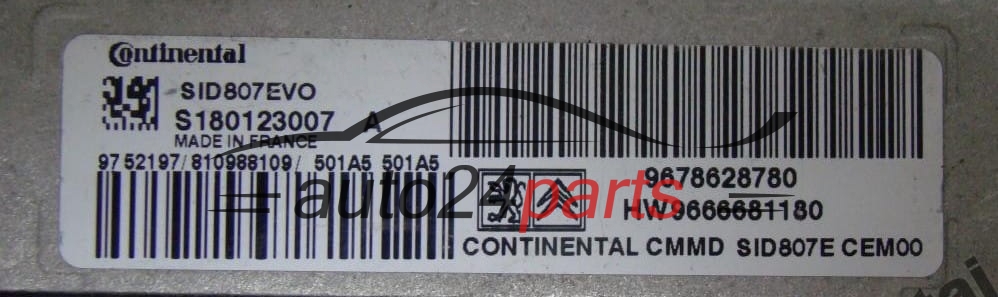 Μονάδα Ελέγχου Κινητήρα CITROEN PEUGEOT 1.6 HDI Continental S180123007 A, S180123007A, 9678628780, HW 9666681180, SID807EVO