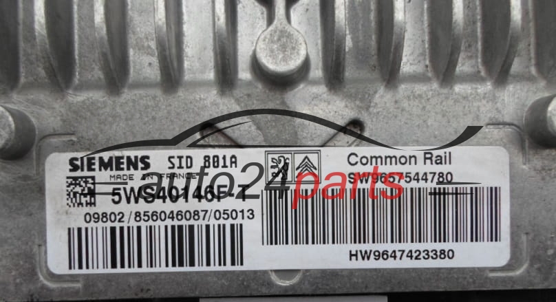 Μονάδα Ελέγχου Κινητήρα CITROEN PEUGEOT 2.0 HDI SIEMENS 5WS40146F-T, 5WS40146FT, SW 9657544780, HW 9647423380, SID801A