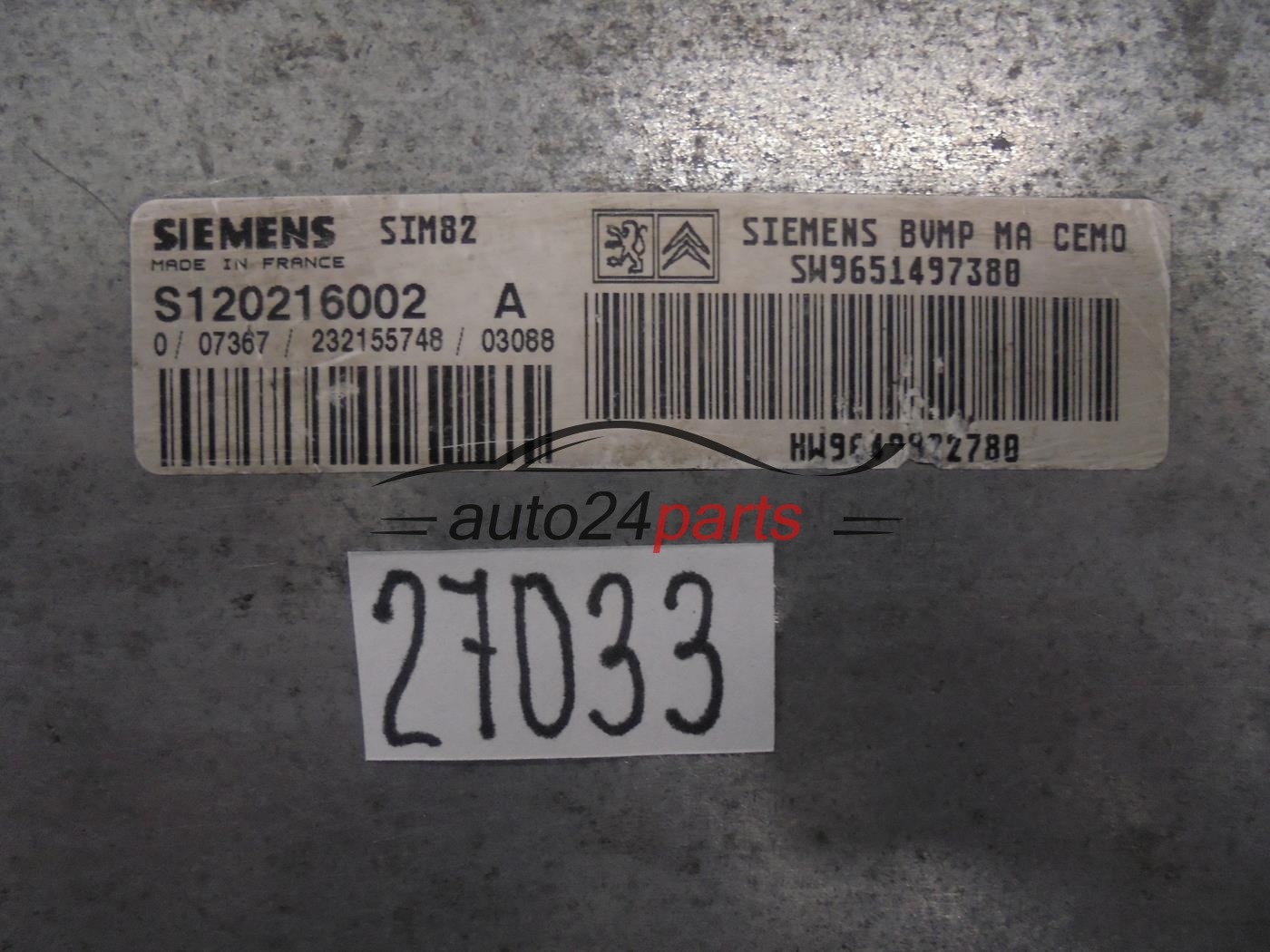 Μονάδα Ελέγχου αυτόματο κιβώτιο ταχυτήτων CITROEN PEUGEOT S120216002A SW9651497380 HW9640922780 SIM82