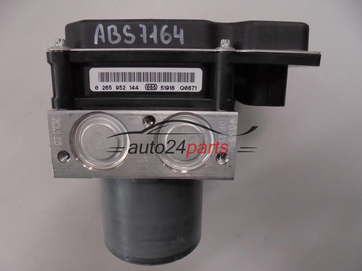 The number 0265952144 identifies the version of the electronic ABS controller working with the pump 0265239432 and the module 8K0907379CP. This designation is used in component manufacturer catalogs and allows identification of the exact technical version of the ABS system.