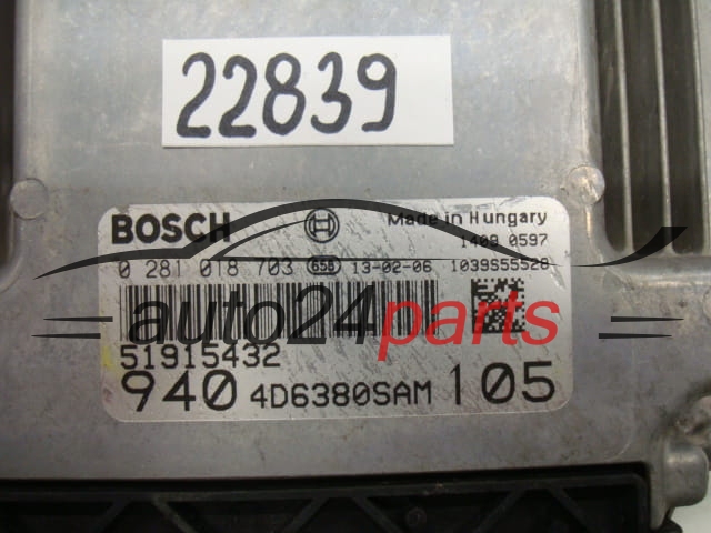 The easiest way is to check the markings directly on the old controller's casing. If you find 0281018703 or 51915432, it indicates that this is the exact control computer model that fits selected Alfa Romeo and Fiat models.