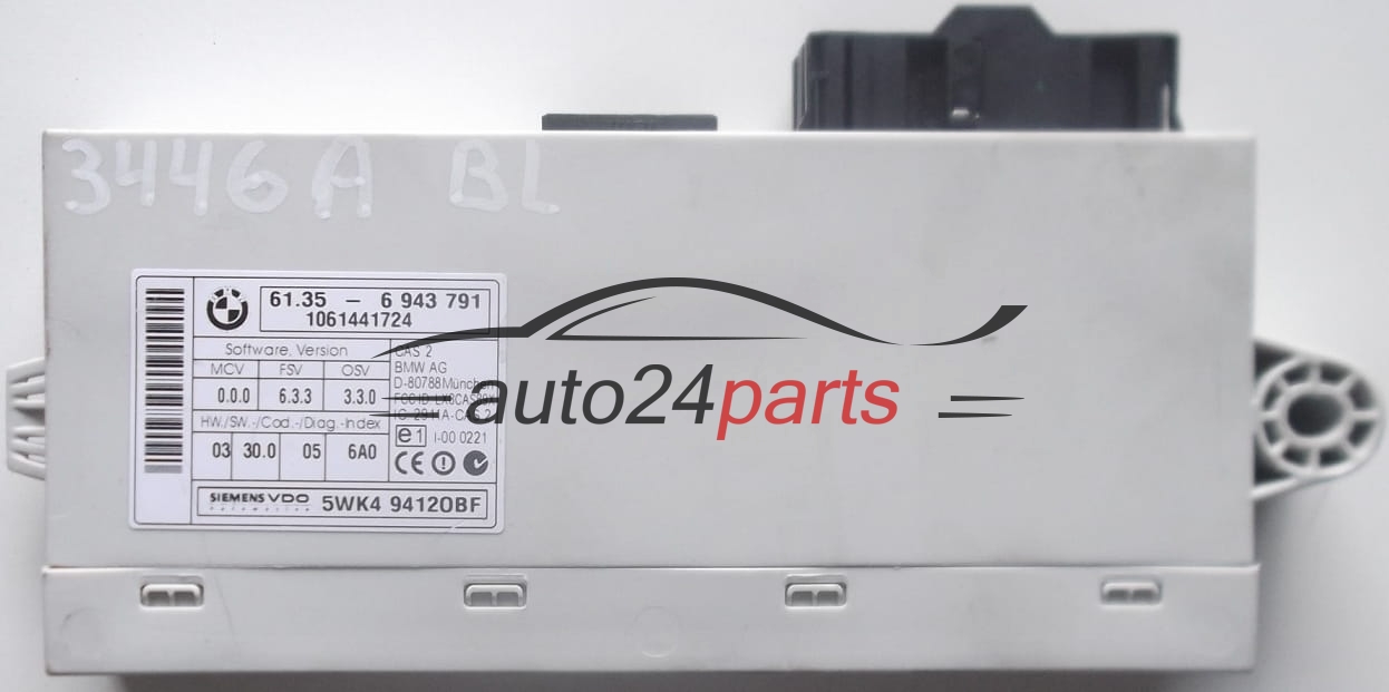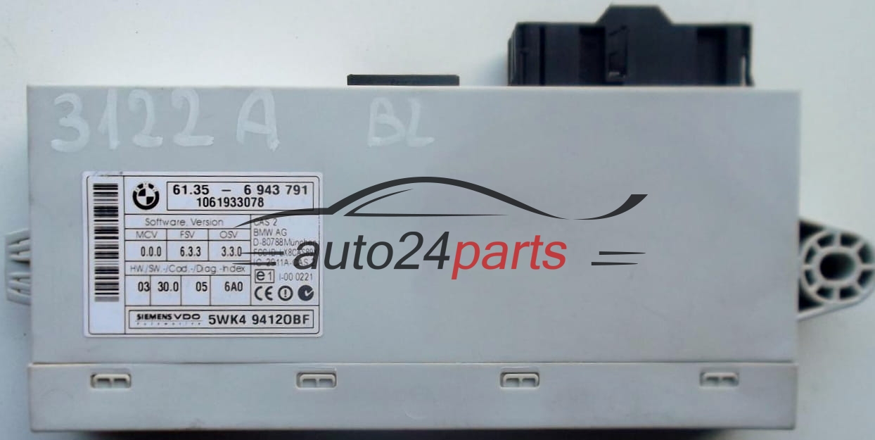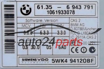 CAS CONTROL MODULE 2 BMW 61356943791, 61.35-6 9 943 791, 61.35 - 6 943 791, SIEMENS VDO 5WK4 9412OBF, 5WK49412OBF