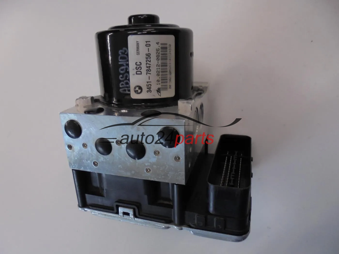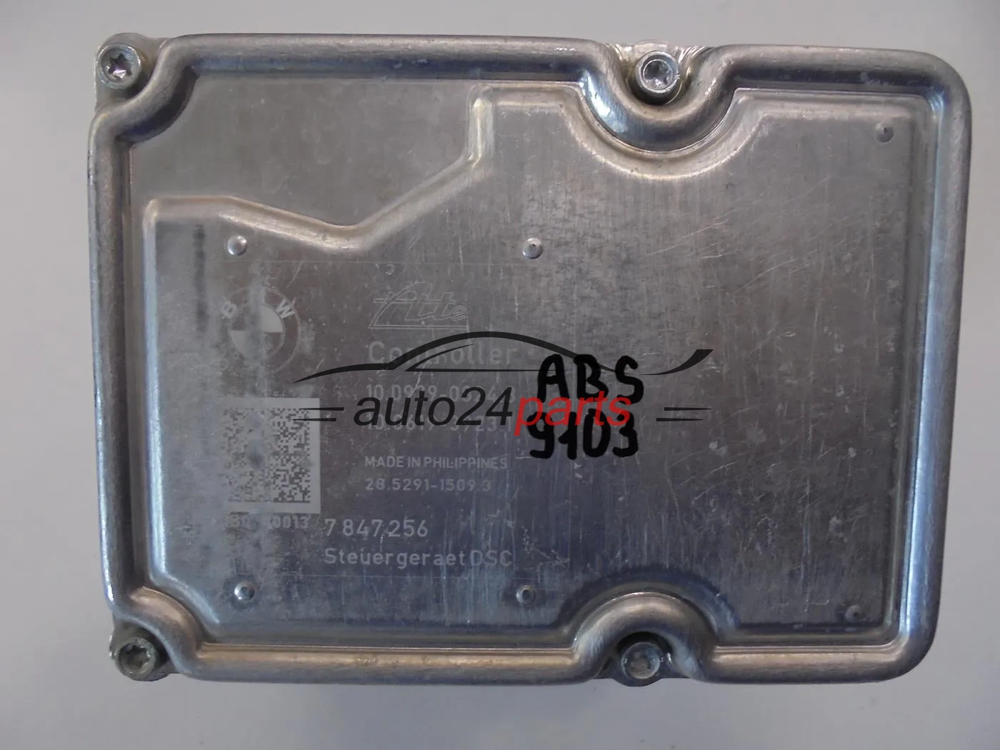 Oryginalna pompa ABS ze sterownikiem do BMW – zgodna z numerami 7847256 oraz 10092908243, idealna jako zamiennik uszkodzonego modułu.