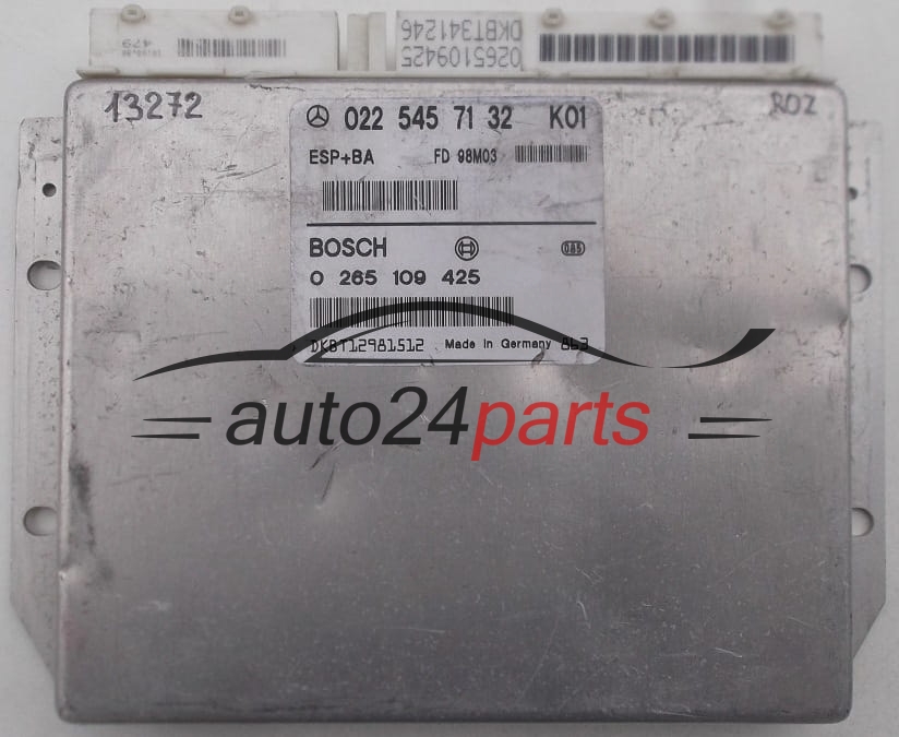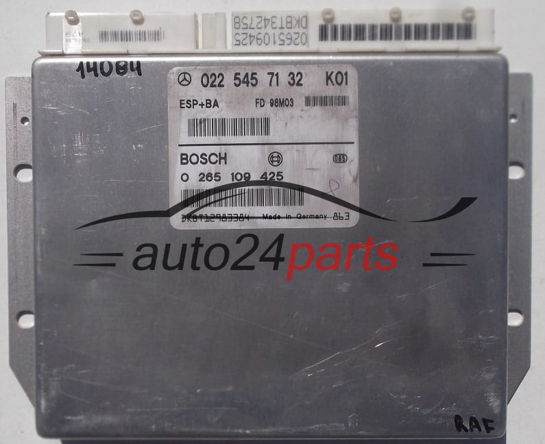 ABS STEROWNIK ESP+BA MERCEDES W168 A0225457132, 0225457132, A 022 545 71 32 BOSCH 0265109425, 0 265 109 425 - 9213, 12194, 13272, 14084