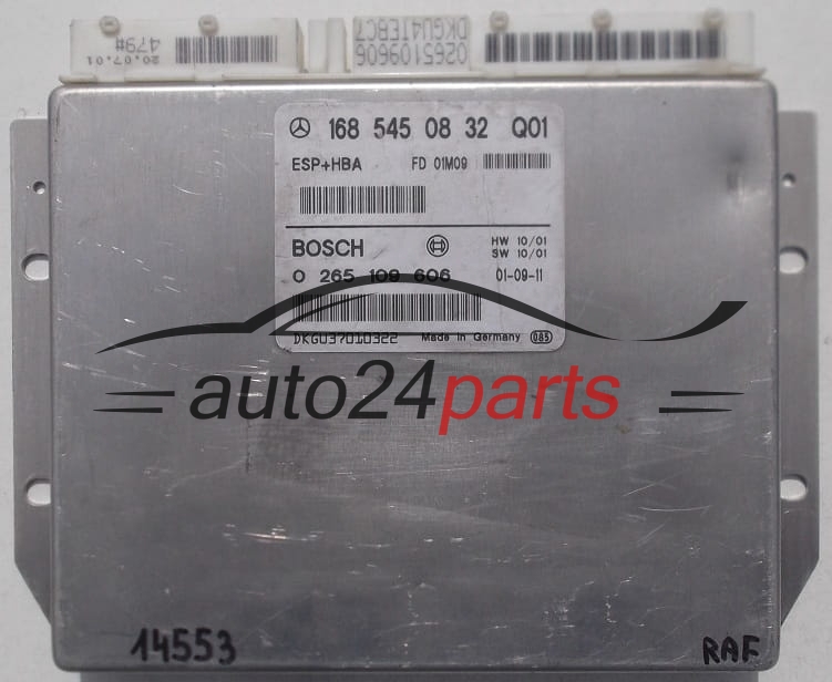 ABS STEROWNIK ESP+HBA MERCEDES W168 A1685450832, 1685450832, A 168 545 08 32 BOSCH 0265109606, 0 265 109 606 - 3730, 4655, 14086, 14553