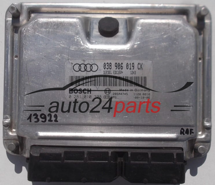 KOMPUTER STEROWNIK SILNIKA AUDI A3 1.9 TDI BOSCH 0 281 010 308, 0281010308, 038 906 019 CK, 038906019CK, 28SA5000, DIESEL EDC15P 1343 -