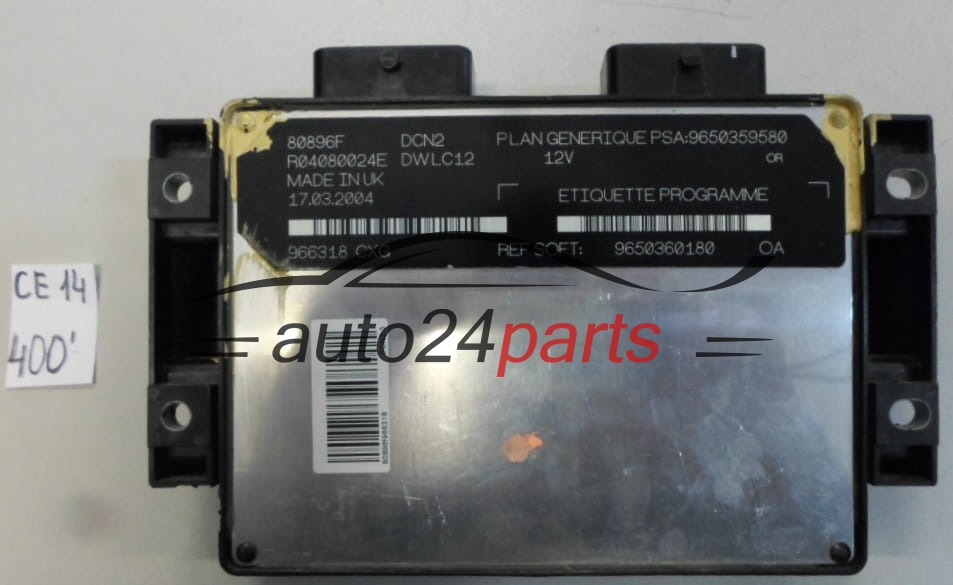 Oferta produktu KOMPUTER STEROWNIK SILNIKA CITROEN PEUGEOT 1.9 D R04080024E, 9650360180, 9650359580 - 400, który został przetestowany i jest objęty 1-miesięczną gwarancją. Wysyłka w 24–48 godzin.