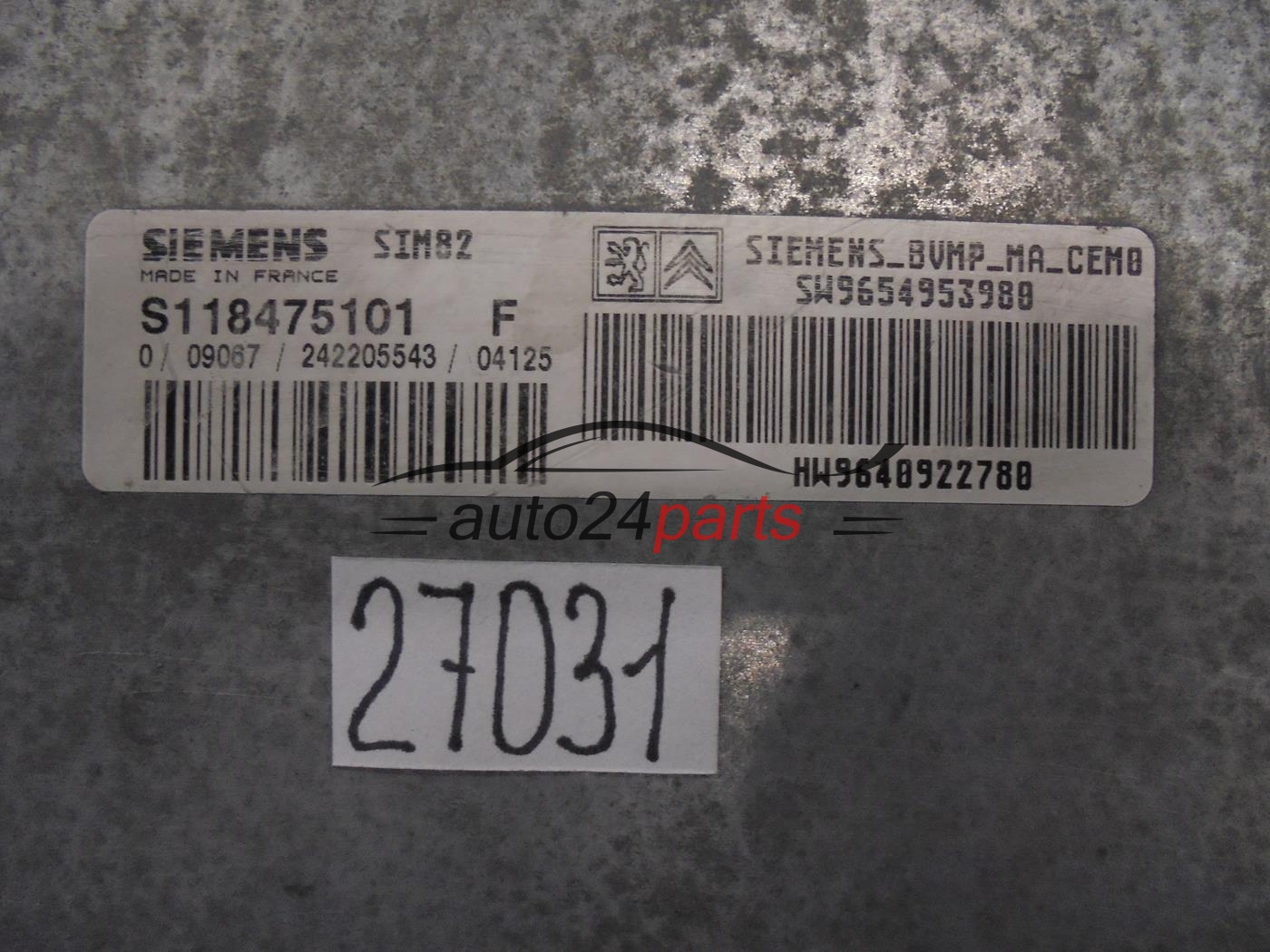 STEROWNIK SKRZYNI AUTOMATYCZNEJ CITROEN PEUGEOT S118475101F SW99654953980 HW9640922780 SIM82 - 27031