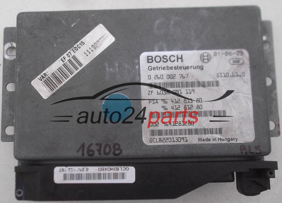 Computador caixa de velocidades automática CITROEN C5 2.2 HDI BOSCH 0 260 002 767, 0260002767, 96 412 811 80, 9641281180